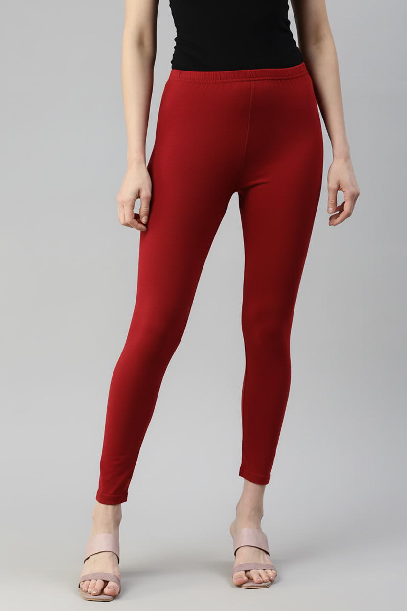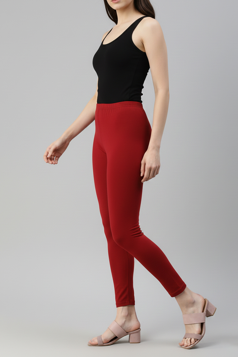👗 Women’s Everyday Ankle Fit Leggings | Soft 🌿 Stretchable ✨ Comfortable Fit (Red)