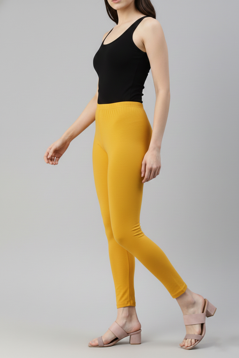 👗 Women’s Everyday Ankle Fit Leggings | Soft 🌿 Stretchable ✨ Comfortable Fit (Yellow)